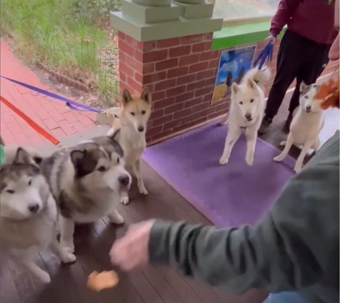 This Instagram post linked below, shows a team of sledding dogs who we treat, calling into the practice after a sledding event. It shows each member of the team excitedly receiving a delicious chicken tender.